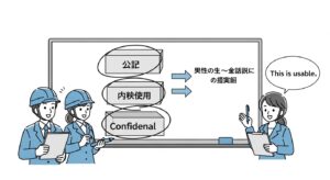 シンプルなガイドラインを作成する 図や具体例を多用した、A4用紙1〜2枚程度にまとまったシンプルなガイドラインを作成します。「新製品のプレスリリース案」は完成まで「機密」、公開後は「公開」に変更する、といった具体的な事例(Before/After)を示すと理解が深まります。作成した資料は、社内ポータルなど誰もがアクセスしやすい場所に保管し、常に最新の状態に保ちましょう。