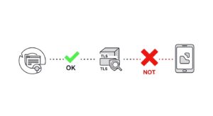 TLSインスペクションでは、Proxyやファイアウォールが本来のサーバー証明書を自身の証明書で置き換えてクライアントに提示します。アプリ側は、この置き換えられた証明書を「不正な証明書」と判断し、通信を自ら切断してしまうのです。これが、ブラウザでは問題ないサイトが、特定のアプリではエラーになる典型的な原因です。