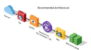 リバースプロキシは、負荷分散(ロードバランサー)、SSL/TLS終端、キャッシュなどの重要な役割を担います。この構成では、WAFとIDS/IPSの役割分担を最適化することが効率的な防御設計の鍵となります。