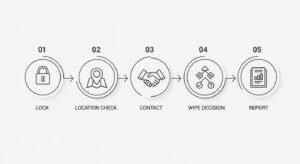 この記事では、スマホや会社の携帯を紛失した際に誰もが冷静に対処できるよう、「ロック→位置確認→連絡→ワイプ判断→報告」という5つのステップを、具体的な手順書として徹底的に解説します。