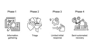 SOAR導入の失敗を防ぐには、スモールスタートと段階的なアプローチが鍵となります。ここでは、リスクを管理しながら着実に自動化を進めていくための、4つのフェーズに分けたベストプラクティスを紹介します。