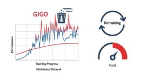 機械学習、特に教師あり学習では、ラベル付けされた「教師データ」の品質がモデルの性能を決定づけます。この教師データに誤ったラベルが含まれていると、AIはそれを「正解」として学習してしまいます。いわゆる「ゴミを入れればゴミが出てくる(Garbage In, Garbage Out)」状態に陥り、予測モデルの分類精度は著しく低下します。