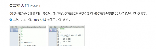 サービス名の通り、1週間でC言語の基本を習得することをコンセプトにしている、無料学習サイトです。C言語がどのようなものか分からないという方は、「0日目」から、C言語の基礎知識は既に知っているという方は「1日目」からスタートすることをおすすめします。説明が大変詳しく、サンプルコードなども豊富なので、初めての実践にもおすすめです。