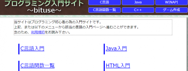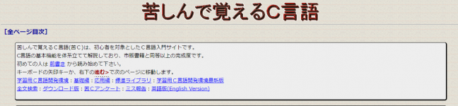印象的なタイトルですが、入門・初心者を対象にしたC言語の無料学習サイトです。C言語とは何か?という基礎的な内容からスタートして、最終的には関数や変数、マクロ機能と言った、実践的且つ応用的な技術を習得することができます。