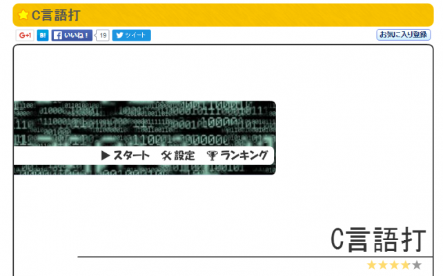 ゲーム感覚でC言語のタイピングが練習できる、無料のタイピング練習サイトです。「とにかく手を動かしてC言語を体感的に覚えたい!」という方にはぴったり!初心者では、高得点を狙うのは難しいかもしれませんが、繰り返し活用していくうちにハイスコアが獲得できるようになりますよ。その頃には、C言語に打ち込みは完璧になっているでしょう。