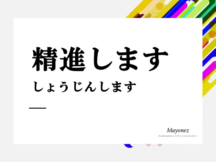 年賀状では会社関係の人や、取引先の相手方に出す際に今年の目標を添え「精進します」という言葉で締める事で、受け取り手には前向きな印象を与えることができます。昨今では年賀状を送る機会は減ってきているとは思いますが、何かの拍子に送る事になった場合は使用してみるのもいいでしょう。